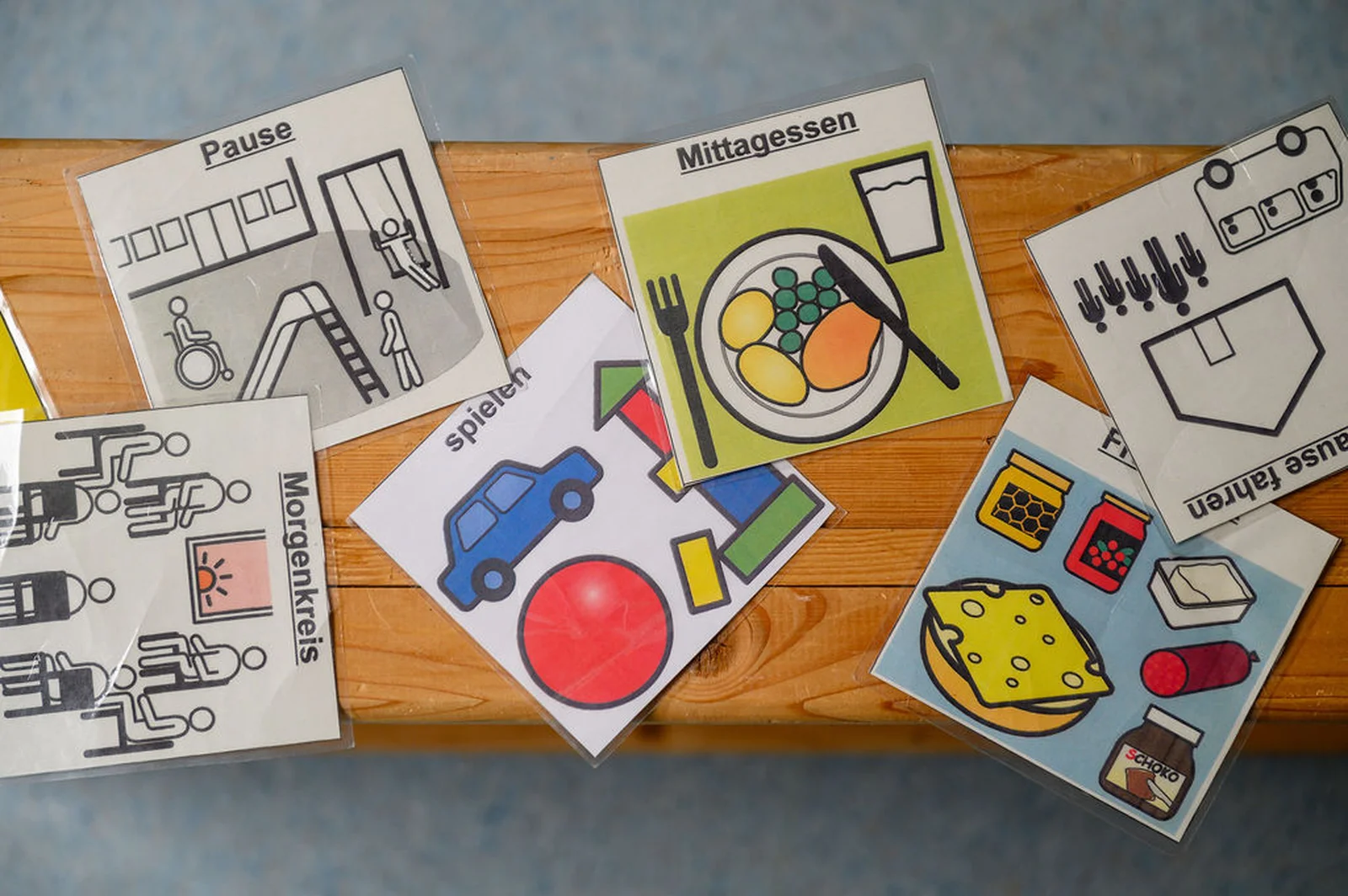 Durch den Einsatz von Symbolen, Piktogrammen, Wochenplänen oder bildgestützen Handlungsanweisungen können komplexe Inhalte und Abläufe verständlicher gemacht werden. Visuelle Hilfen dienen dabei nicht nur als Orientierung, sondern fördern auch die Selbstständigkeit der Kinder. Hierbei werden die Elemente zur Strukturierung und Visualisierung des Alltags aus dem TEACCH Ansatz mit einbezogen.