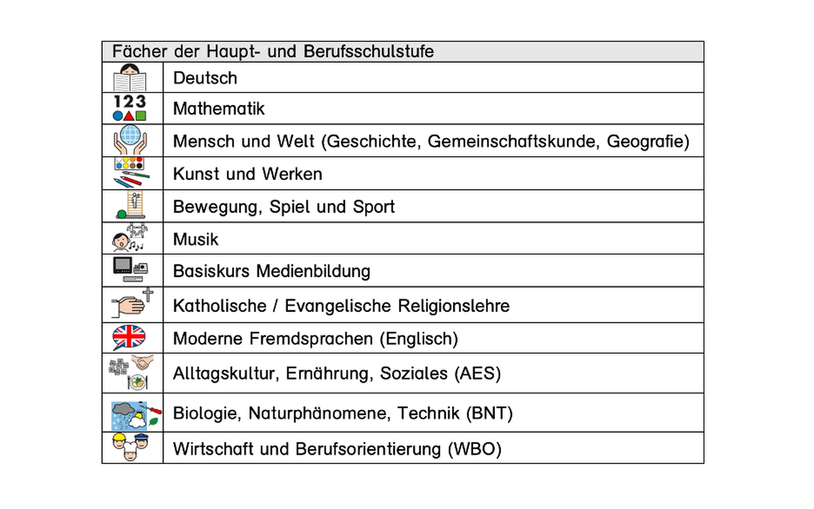 Bei der Sichtung des Bildungsplans fällt auf, dass für jedes Fach eine Art Kompetenzkatalog beschrieben wird, an welchem sich die Lehrkräfte orientieren sollen. Dieser Katalog bildet in jedem Fach umfassend unsere Schülerschaft ab und gibt Anhaltspunkte für den Unterricht.